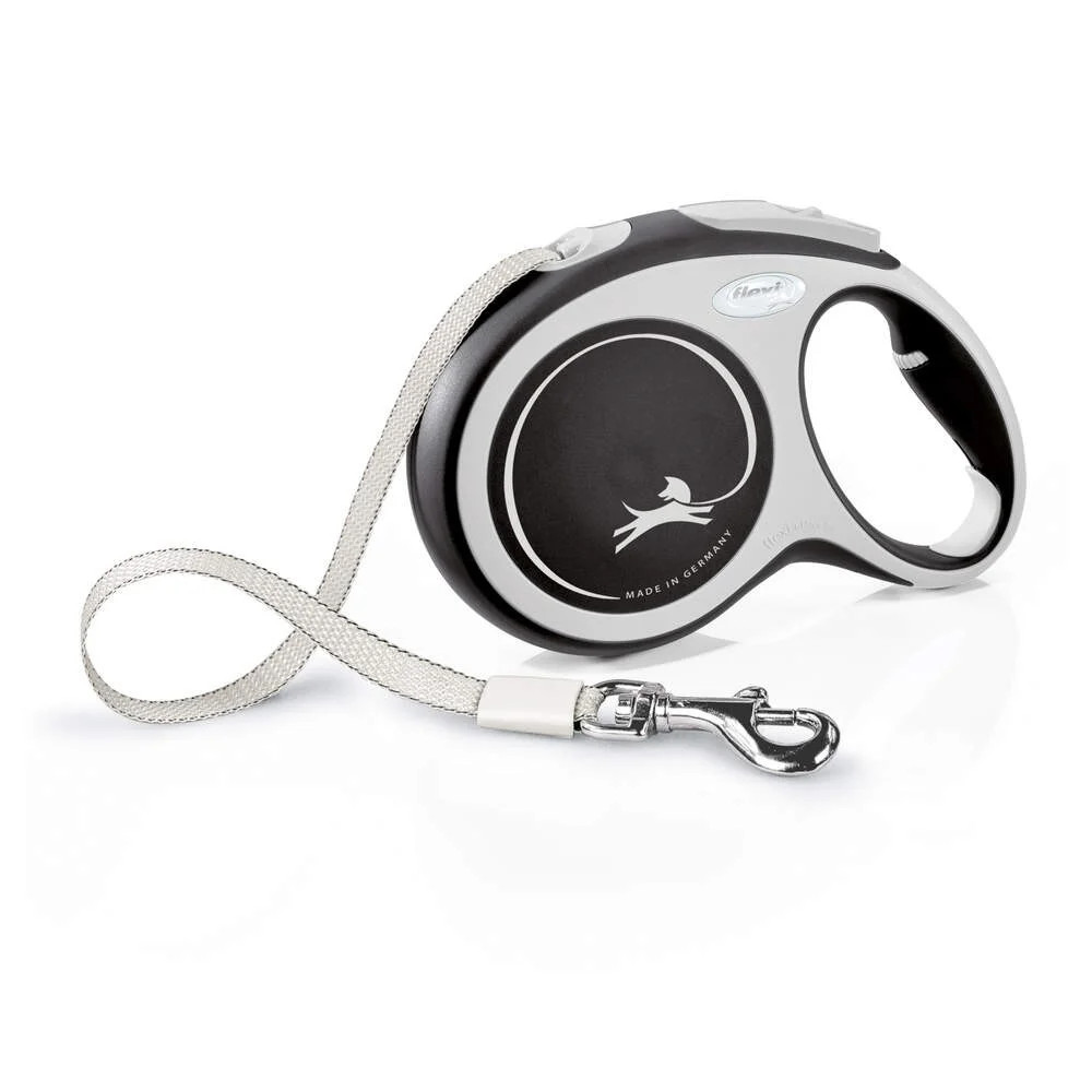 Flexi New Comfort taluttimissa on miellyttävä ja pehmeä kädensija. Leveä hihna. Taluttimeen voi kiinnittää FLexi LED valon tai Multi Box tarvikekotelon makupaloille tai kakkapusseille.