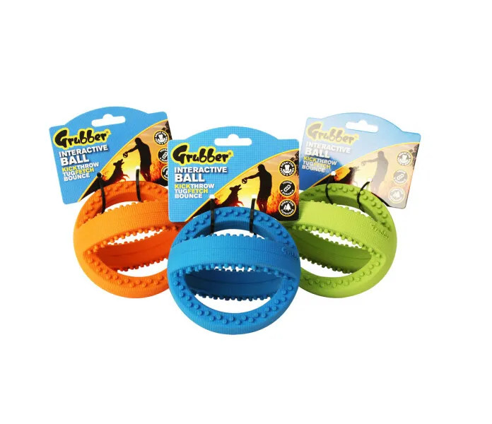 Täyskumipallo, jonka sakarista on helppo ottaa kiinni. Sakarissa on nystyröitä jotka pehmesti hierovat ikeniä ja hampaita puhdistaen niitä.Pallo pomppii, se on erinomainen noutolelu. Vahva ja joustava, voidaan käyttää myös ulkoleikkeihin.